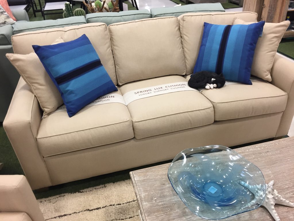 We have some great upholstery at Turner Home. Our designer series allows you to pick the cushion, arm, skirt, nail head the list goes on an on. You can sit on the furniture you are designing to make sure the comfort is there!