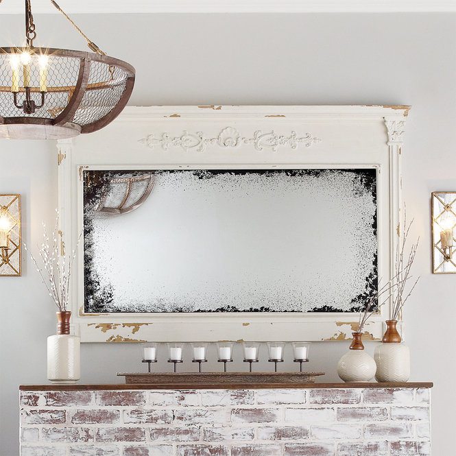 3. The perfect amount of space between a mirror and the top of a mantel is 7 inches.